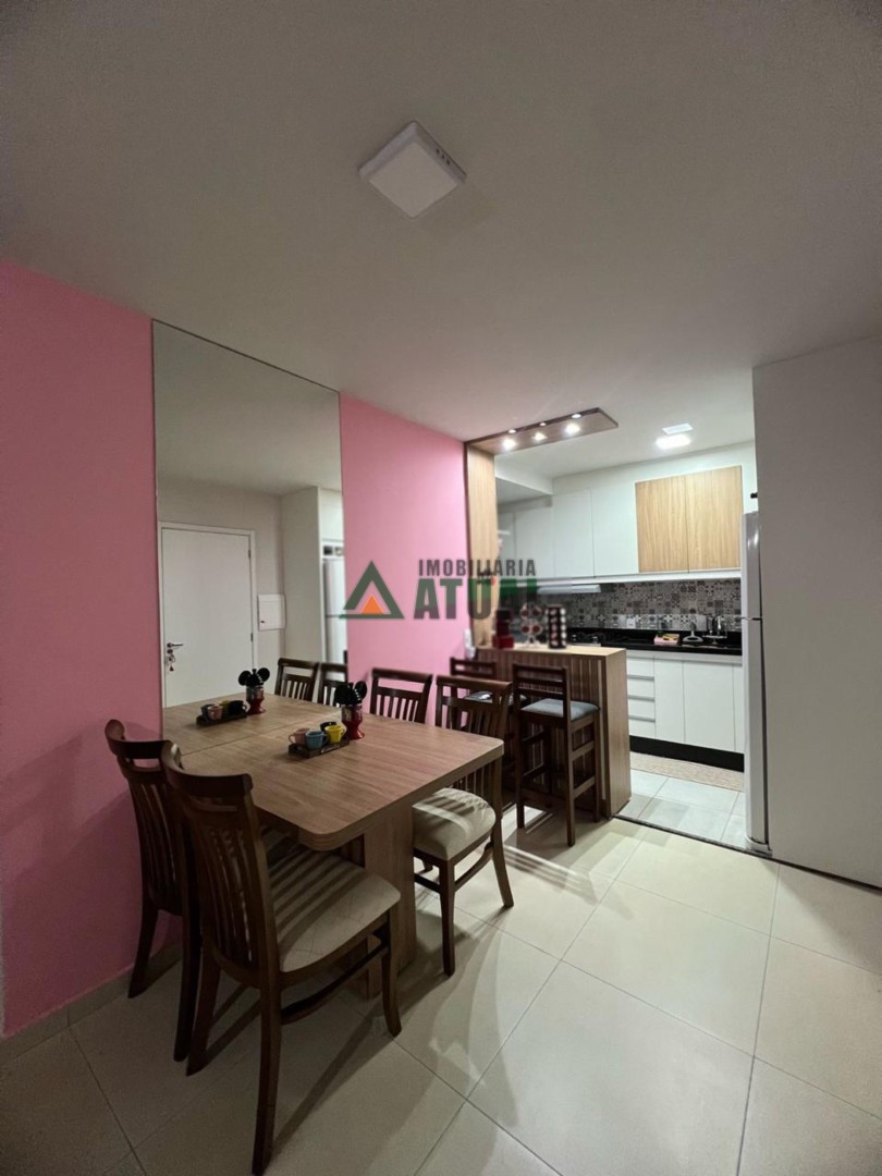 Apartamento com 2 dormitórios, sala em 2 ambientes, wc social, cozinha, área de serviço e garagem. Excelente área de lazer com piscina, quadra, churrasqueira e play ground.
