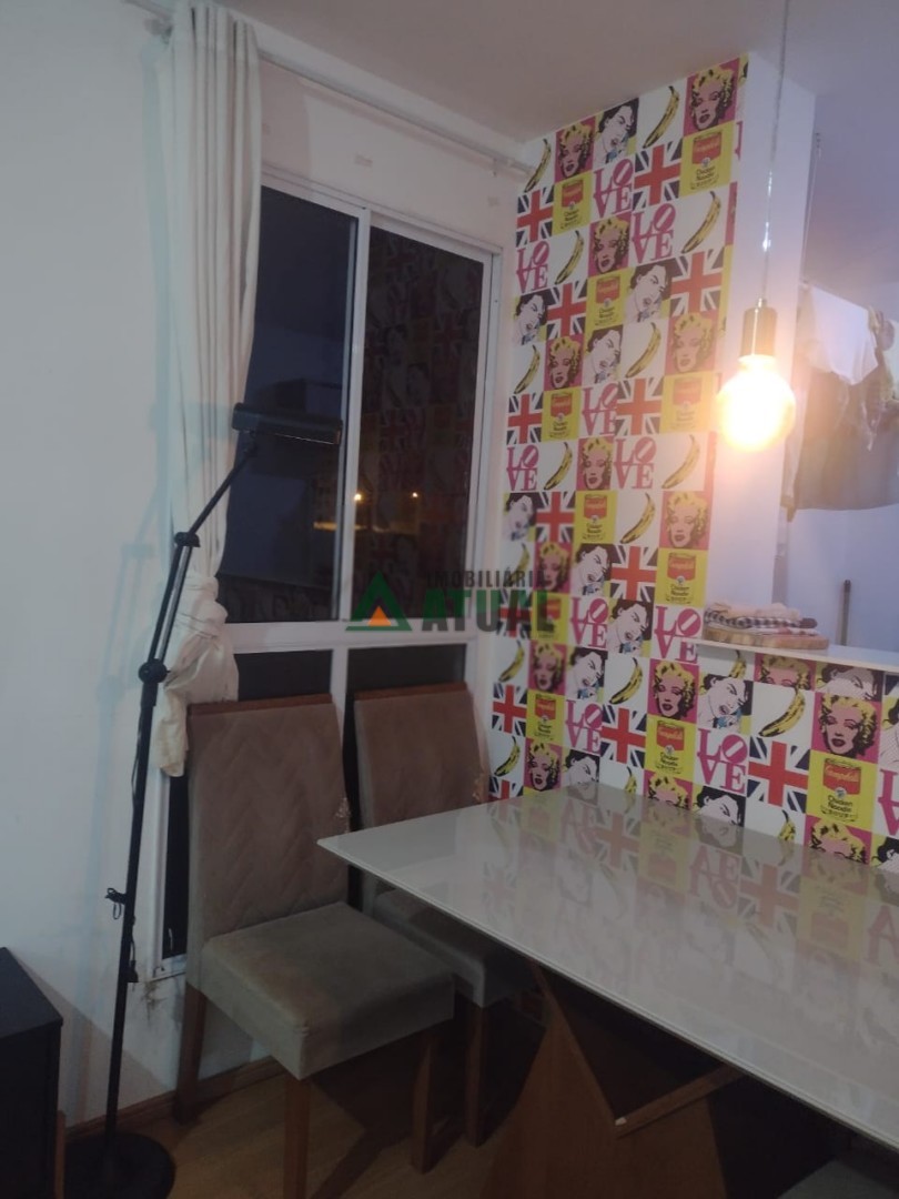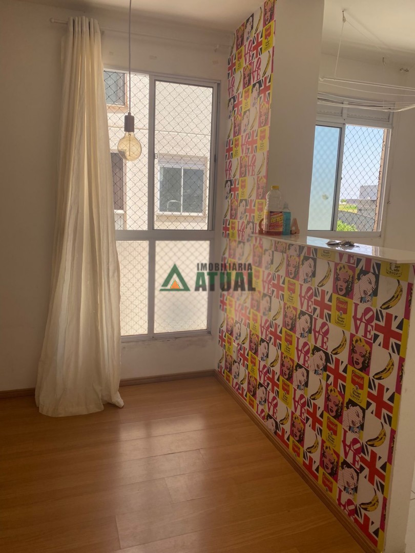 Apartamento com 02 quartos, wc social, sala, cozinha, área de serviço e 01 vaga de garagem.