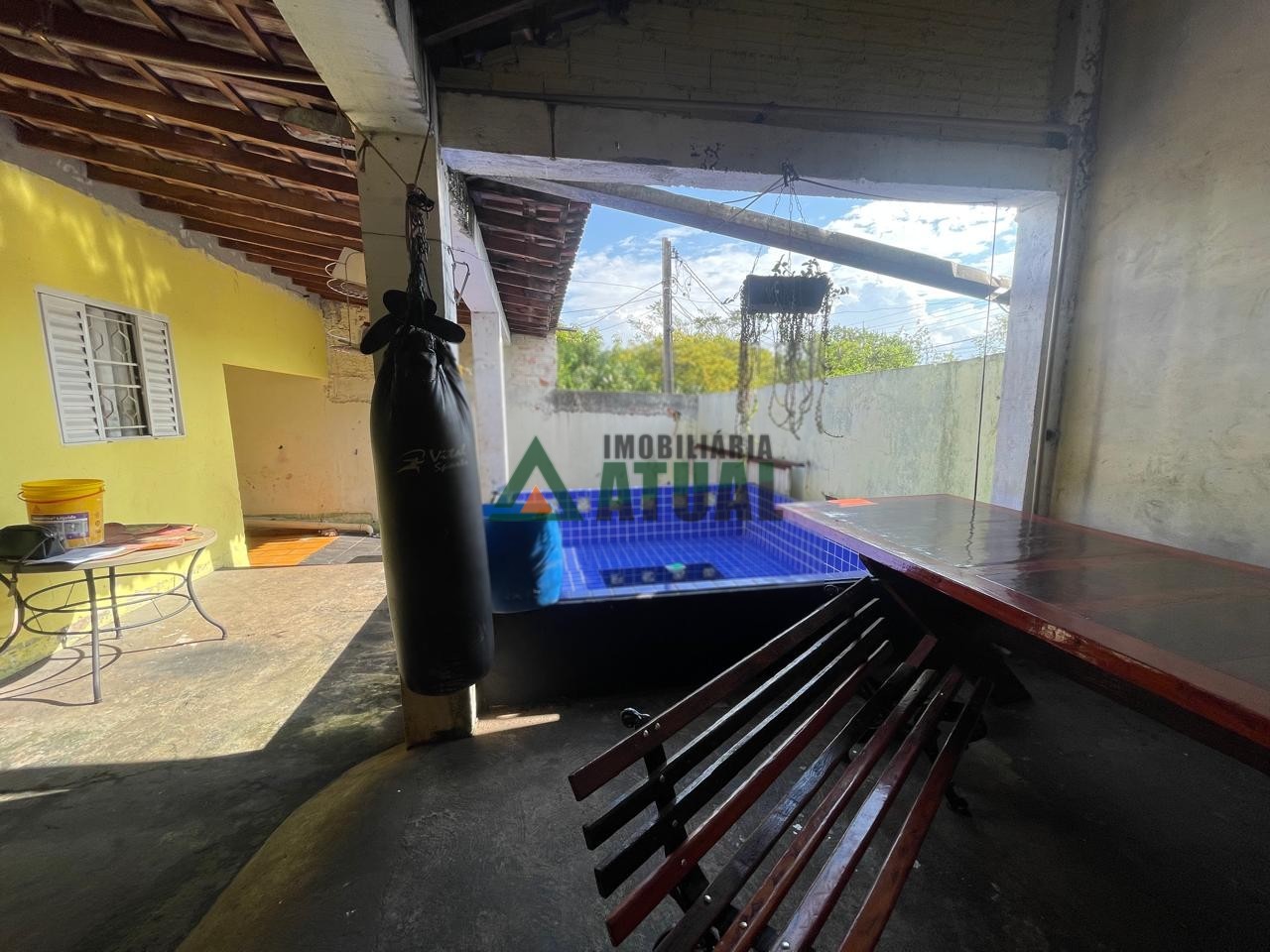 Casa com edicula, sendo a casa da frente com 02 quartos, sala, cozinha, wc social, churrasqueira e piscina. Edicula com 02 quartos, sala conjugada, wc social e garagem para 3 carros.